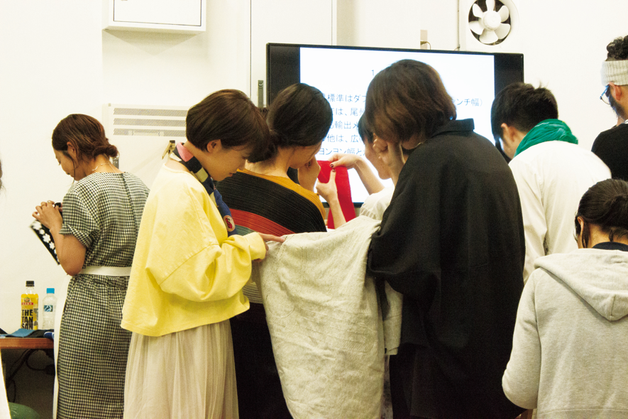 第1回目から簡単に、繊維の仕組み、織り、染め、編み、と素材に触れ、産地のことはもちろん、生産という視点でもお話を聞けたことは、これからはじまるひとつひとつの講義の大きなプラスになったことでしょう。